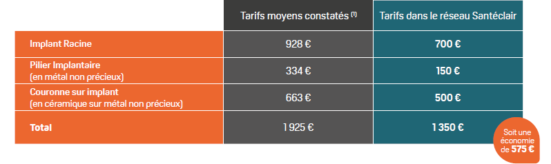 • Jusqu’à 30 % d’économies sur certains actes d’implantologie